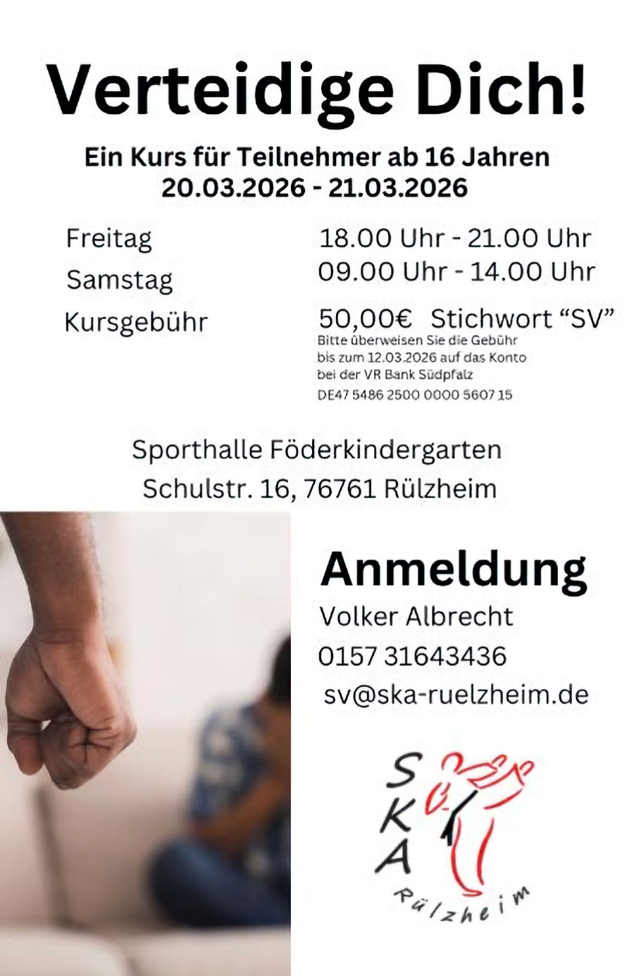 Volker Albrecht 4. Dan Selbstbehauptung/Selbstverteidigung Gewaltpräventionstrainer Kinder/Jugendliche, Erwachsene und Berufsgruppen 01573 1643436 |